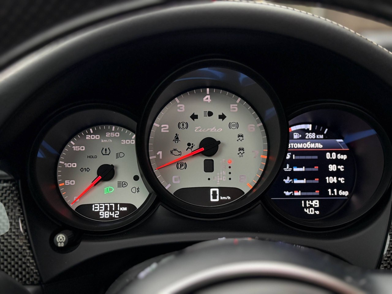 Комплектация: Активная подвеска + Пневмо, летние колеса R21,красные суппорта, 16-ти позиционные сидения с памятью, подогревом и вентиляцией, Sport Chrono, Гербы Porsche, потолок Алькантара + Панорама, вставки салона - карбон, подогрев руля, камера заднего вида, навигация, аудисистема BOSE, 2-х зонный климат контроль, полный электро-пакет.